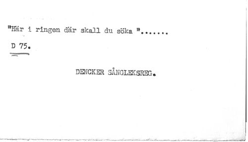 //// t //// "Här i ringen där skall du söka //// D 75. //// DENCKER SÅNGLEKSRBS. ////