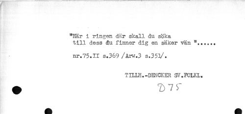 //// "Här i ringen där skall du söka //// till dess du finner dig en säker vän ..... //// nr.75.11 s.369 /Arw.3 s.35l/. //// TILLH.-DENCKER S\^FCLKL. //// ^ T) ////