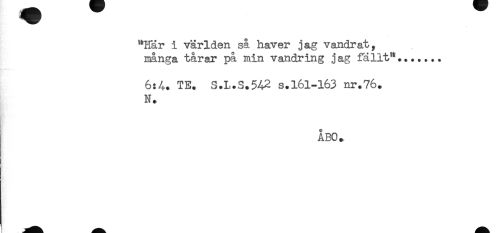 //// "Här i världen så haver jag vandrat, //// många tårar på min vandring jag fällt"....... //// 6:4. TE. S.L.S.542 s.161-163 nr.76. //// N. //// ÅBO. ////