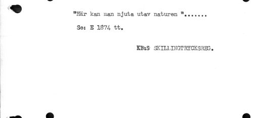 //// ^^ "Här kan man njuta utav naturen "*...... //// Se: E 1874 tt. //// * //// KB:S SKILLINGTHYCKSREG. //// # ////