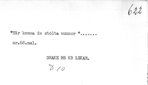 //// "Här komma de stolta nunnor **....... //// nr.68.mel. //// DRÄKE MS KB LEKAR. //// i //// X //// g //// i //// ) ////