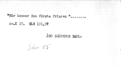 //// " " ..... .......... ..... ...... .. ............. //// "Bär kommer den första friaren '*........ //// nr.K 17. SLS 131,9? //// ÅBO SJÖBERGS SAML: ////