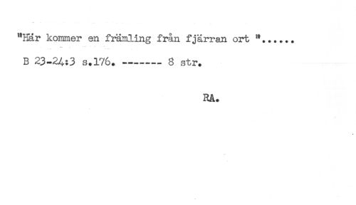 //// "Här kommer en främling från fjärran ort //// B 23-24:3 s.176.-------8 str. //// RA. //// r* ////