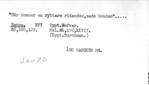 //// - ' " ....... ........ ..........- - - - r - ... , ...... „. .. . .... //// "Här kommer en ryttare ridandes.sade bonden"..... //// * ..........*---' ... .. //// .... t * - * //// Ramsa. NV? Uppt.Nefvar. //// R5,186,129. Mel.R6,190^XVII. //// (Uppt.DurclTman.) //// i //// ! //// ! //// ÅBO RANCKEM MS. //// J ^ ^ //// H ////