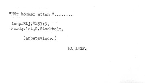 //// "Här kommer ettan //// : //// insp.Rtj.S25l:3. //// Nordqvist Stockholm. //// (arbetsvisor.) //// RA D^SP. ////