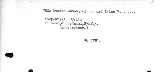 //// "Här kommer ettan,hej upp med tvåan "........ //// insp.Rtj. 154.89:10. //// Nilsson, John.Magni,Ryssby. //// (arbetsvisor.) //// RÅ DJSF. //// < ////