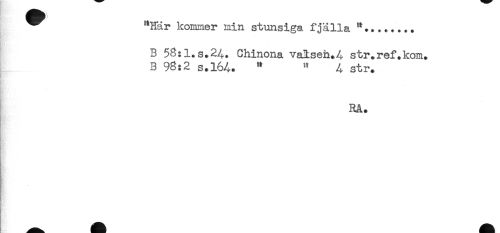 //// ^ ^Här kommer min stunsiga fjälla \....... //// B 58:l.s.24. Chinona valseh.4 str.ref.kom. //// 3 96:2 s.164. " ^ 4 str. //// ! //// RA. ////