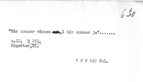 //// "Här koiamer vännen ^g&^å här koimner ja"....... //// s.12. D251. //// Hogsäter/Dl. //// V F F 693 fol. ////