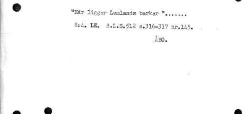 //// "Här ligger Lemlands barkar //// 8:4. LE. S.L.S.512 s.316-317 nr.145. . //// ÅBO. //// g. ' //// L //// K - ////