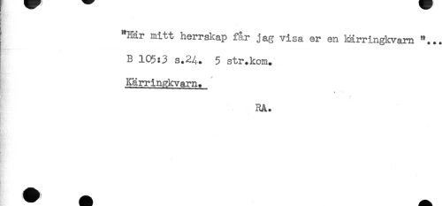 //// "Här mitt herrskap får jag visa er en kärringkvam *. //// B 105:3 s.24. 5 str.kom. //// Kärringkvarn. //// t //// RA. //// ! //// . ////