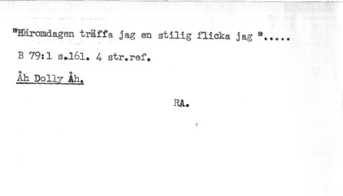 //// *** " -- T) t - -....... //// "Häromdagen träffa jag en stilig flicka jag "..... //// B 79:1 s*l6l. 4 str.ref. //// Åh Dolly Åh. //// RA. ////