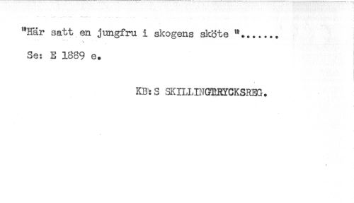 //// "Här satt en jungfru i skogens sköte ...... //// Se: E 1889 e. //// KB:S SKILLDIGRHYCKSHEG. ////