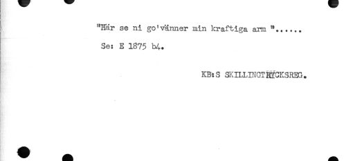 //// "Här se ni go' vänner min kraftiga arm //// Se: E 1875 //// - //// KB:S SKILLINGTKfOKSRBG. //// * ////