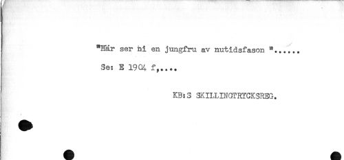 //// "Här ser ti en jungfru av nutidsfason *...... //// !j Se: E 1904 f,.... //// KB:S SKILLINGTRYCKSREG. //// t ////