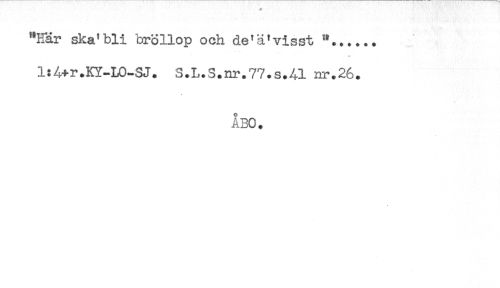 //// "Här ska'bli bröllop och de'ä'visst "...... //// l:4.+r.KY-L0-SJ. S.L.S.nr.77.s.Al nr.26. //// ÅBO. ////