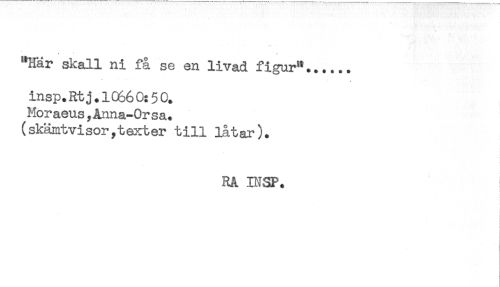 //// "Här skall ni få se en livad figur"...... //// insp.Rtj. 1066 0:50. //// Moraeus,Anna-0rsa. //// (skämtvisor,texter till låtar). //// RA INSP. //// I //// I //// - ////