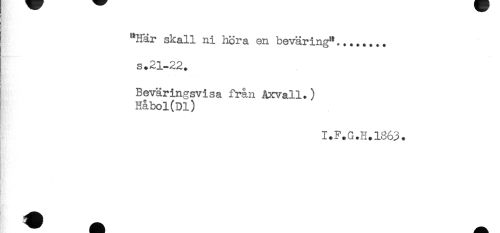 //// "Här skall ni höra en beväring"........ //// ] s.21-22. //// Beväringsvisa från åxvall.) //// Håbol(Dl) //// I.F.G.H.1863. ////