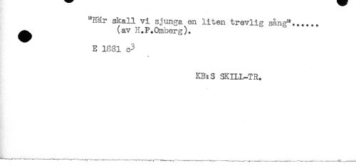 //// "Här skall vi sjunga en liten trevlig sång"...... //// ^^ (av H.P.Omberg). //// E 1881 c3 //// KB:S SKILL-TR. ////