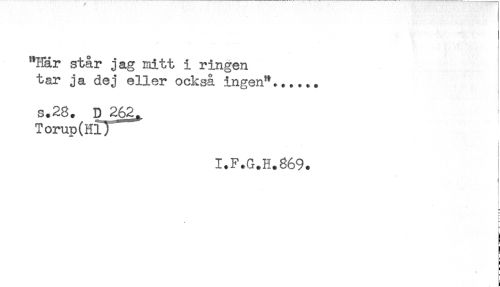 //// "Här står jag mitt i ringen //// tar ja dej eller också ingen"...... //// s.28. D 262^ ^ //// Torup(HlI //// < //// I.F.G.H.869. //// * //// : //// T //// t //// ^ //// r //// p //// ! //// r //// ! //// 6 //// * ////