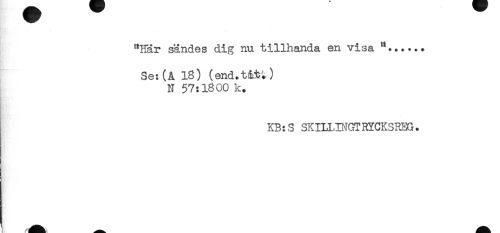 //// "Här sändes dig nu tillhanda en visa //// Se:(A 18) (end.tadst) //// N 57:1800 k. //// KB: S SK ILI.DJGT RYCKSREG. ////