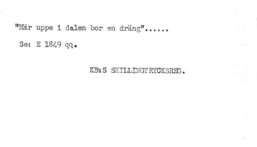 //// "Här uppe i dalen bor en dräng"...... //// Se: E 1849 qq. //// KB:S SKILLINGTRYCKSREG. ////