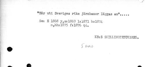 //// "Här uti Sveriges rike järnbanor läggas an"..... //// f //// I Se: E 1868 y,z:l869 1:1871 h:l874 //// m,hh:l875 f:l876 q4. //// KB:S SKIL1INGTHYCK3REG. //// ( //// t ////