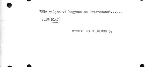 //// "Här viljen vi begynna en Domaredans"...... //// s.A9(D147) //// DYBECK MS FOLKLORE 5. ////