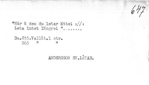 //// "Här ä den du letar ätteL ://: //// Leta intet längreL ...... //// Da.855.Vallåt.l str. //// 865 ^ ^ //// ANDERSSON SV. LAT AR. ////