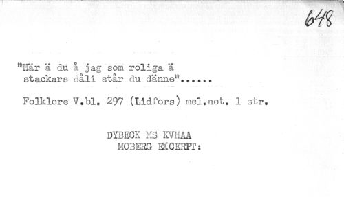 //// "Här ä du å jag som roliga ä //// stackars dåli står du dänne"...... //// ........ ......* - //// FoBtlore V.bl. 297 (Lidfors) mel.not. 1 str. //// DYBECK MS KVHÅA //// MOBERG ECCERPT: ////