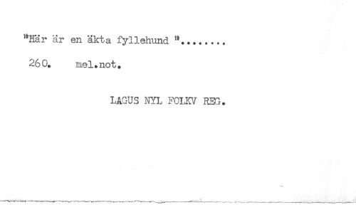 //// "Här är en äkta fyllehund "........ //// 260. mel. not. //// LAGUS NYL FOLKV REG. ////