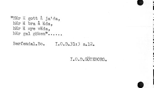 //// ! //// "Här ä gott å ja*da, //// här a bra å äda, L //// här ä mye väda? ^ //// här gal göken"............L //// E //// i //// Berfendal.Bo. I.O.D.3l:3 s.12. [ //// 5 //// } //// I.O.D.GÖTEBORG. ^ //// i //// a ////