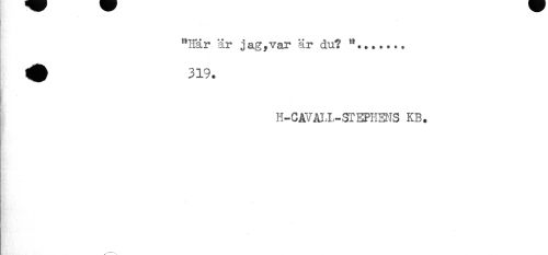 //// "Här är jag,var är du? //// H-CAVALI.-STEPHEHS KB. //// / < ////
