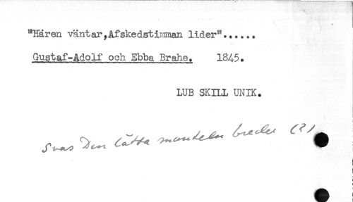//// "Haren väntar,Åfskedstii;man lider"...... //// ^ ! ^ //// Gustaf-Ådolf och Ebba Brahe. 1SA5. //// LUB SKILL UI^TIK. //// s //// t //// t //// ! //// ) //// ! ////