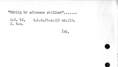 //// "Härlig är aftonens stillhet"....... //// - //// 2:8. TJ. S.L.S.35.S.113 nr.110. //// J. B-n. //// ÅBO. //// i //// i //// ' ////