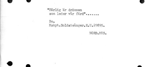 //// "Härlig är drömmen //// som leder vår färd"....... //// Bo. //// Mskpt.Soldatsånger.E.U.29895. //// NCRD.MUS. ////