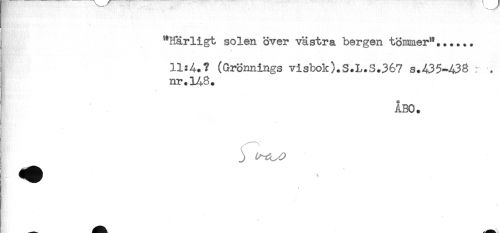 //// "Härligt solen över västra bergen tömmer"...... //// 11:4.? (Grönnings visbok).S.L.S.367 s.435-438 r //// ! nr. 148. //// ÅBO. //// j //// # ////