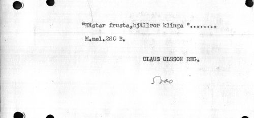 //// '' * i * ' //// - //// "Hästar frusta,bjällror klinga "........ //// - ' * - - //// - //// . . - - - . . ... ... - //// M.mel.280 B. //// . //// - //// ' t/. //// ' ' - ' * ., //// OLAUS OLSSON REG. //// Kr ' //// K' < ' - < - //// t ////