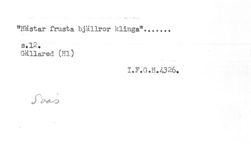 //// '' " " ** --..... - - -w - ' < .. //// "Hästar frusta bjällror klinga**....... //// s.12. //// Gällared (Hl) //// A* //// I.F.G.H.4326. //// * ////