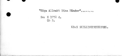 //// "Höga Allmakt Dina Händer"........ //// ^ Se: E 1772 d. //// Qb 5. //// KB:S 3KILLINGTRYCKSREG. ////