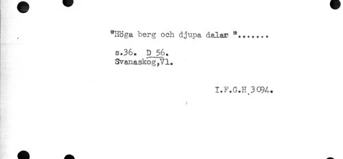 //// "Höga berg och djupa dalar //// s.36. p 56. //// SvanaskogyVl. //// I.F.G.H 3 094. //// ! ////