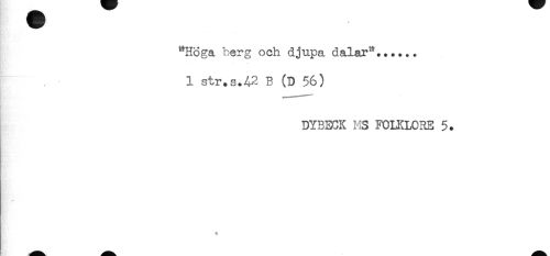 //// "Höga berg och djupa dalar"...... //// 1 str. s.4-2 B (D 56) //// DYBECK HS FOLKLORE 5. //// t ////
