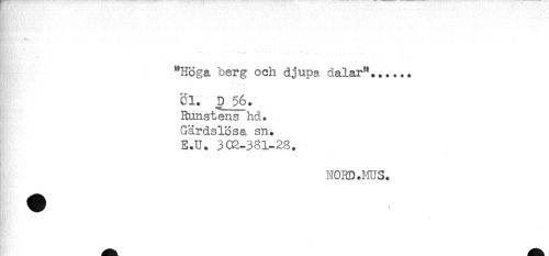 //// "Höga berg och djupa dalar"...... //// Cl. D_%. //// Runstens hd. //// Gärdslösa sn. //// E.U. 302-381-28. //// NORD.HUS. //// n H ////