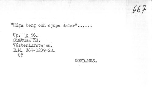 //// "Höga berg och djupa dalar"...... //// Up. D 56. //// Simtuna HR. //// Västerlöfsta sn. //// E.H. 869-1239-28. //// U? //// NORD.MUS. ////