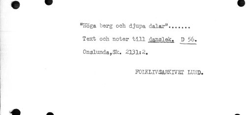 //// Text och noter till danslek. D 56. //// Onslunda?Sk. 2131:2. //// ^ FOIRLr/SARKIVET LUND. ////