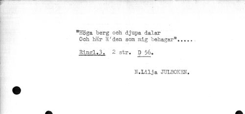 //// Ht'* //// ' * * ...... .. //// "Höga berg och djupa dalar //// ^ Och här ä'den som mig behagar"....., //// Rinal.3. 2 str. D 56. //// N.Lilja JUI,BOKEN. ////