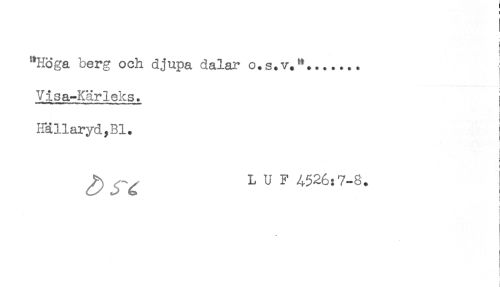 //// j //// "Höga berg och djupa dalar o.s.v.**....... //// Visa-Kärleks. //// Hällaryd,Bl. //// ! //// i //// ^ ^ L U F 4526:7-8. //// ! //// ! ////