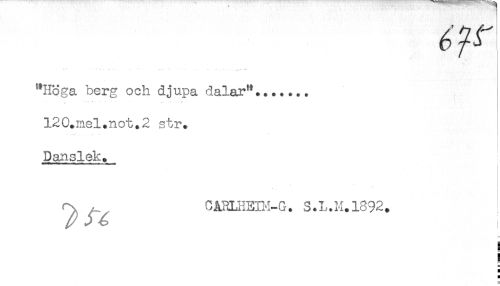 //// '*Höga berg och djupa dalar"....... //// 120.mel.not.2 str. //// Danslek. //// ^ ^ CARLHEIM-G. S.L.M.1892. //// S //// 5 //// } //// H //// H ////