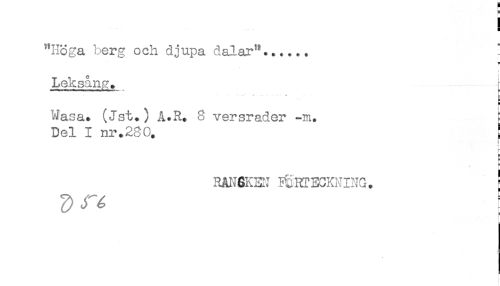 //// i //// H //// Leksån^. //// * - . - //// Wasa. (Jst.) A.R. 8 versrader -m. //// Del I nr.230. //// i //// ! //// RAN6KEN FÖRTECKNING. //// D ^ ! //// = //// 6 //// B ////
