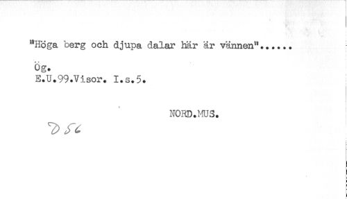 //// "Höga berg och djupa dalar här är vännen*'...... //// Og. //// E.U.99.Visor. I.s.5. //// NORD.MUS. //// i //// i* //// ! //// = //// i ////