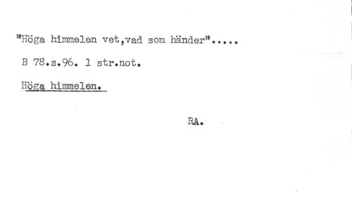 //// "Höga himmelen vet,vad som händer"..... //// B 78.S.96. 1 str.not. //// Höga himmelen. //// Rå. //// ! ////